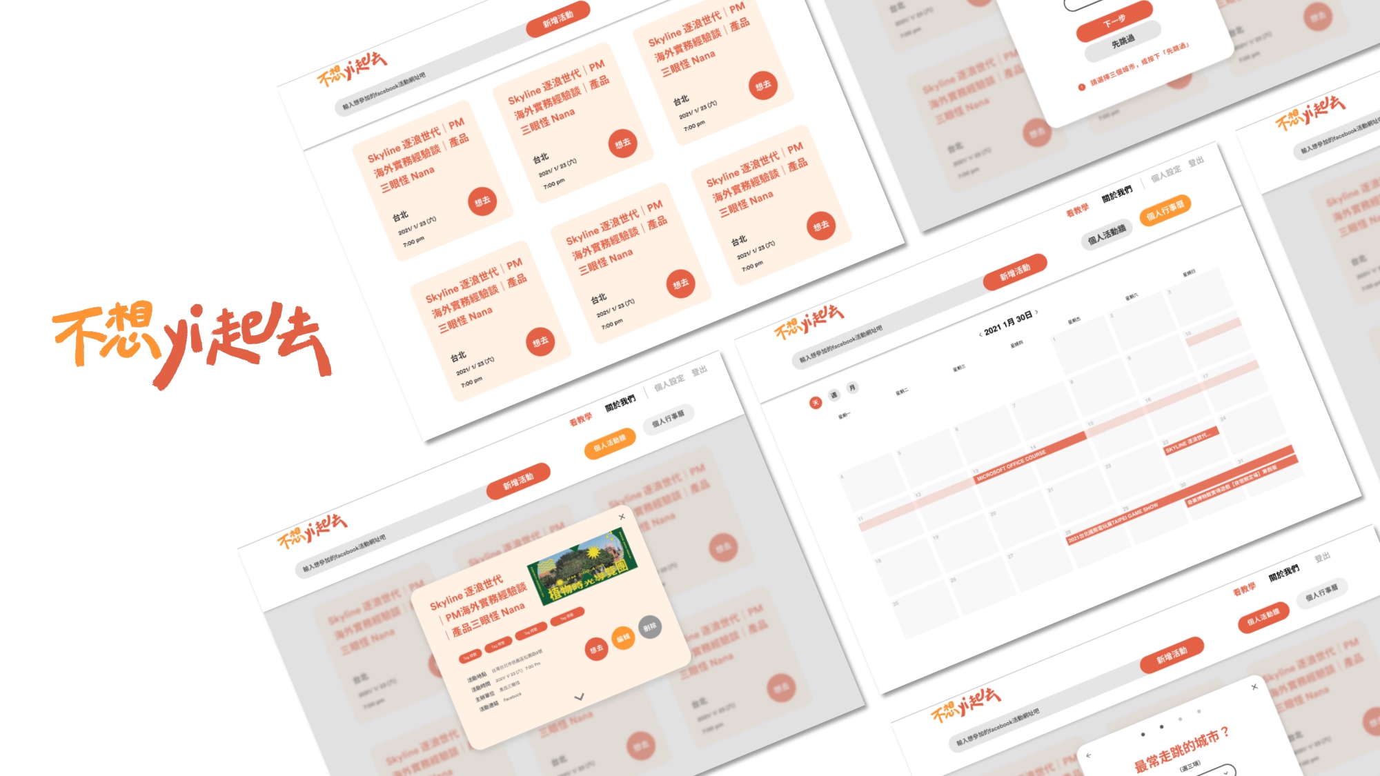 個人頁面分為「個人活動牆」以及「個人行事曆」模式,目的是為了讓使用者在不同情境下可以切換不同的觀看模式。例如使用者這週末想找藝文活動參加,就切換為「個人行事曆」的「週」,看看自己這週末有沒有已經加入的藝文活動。