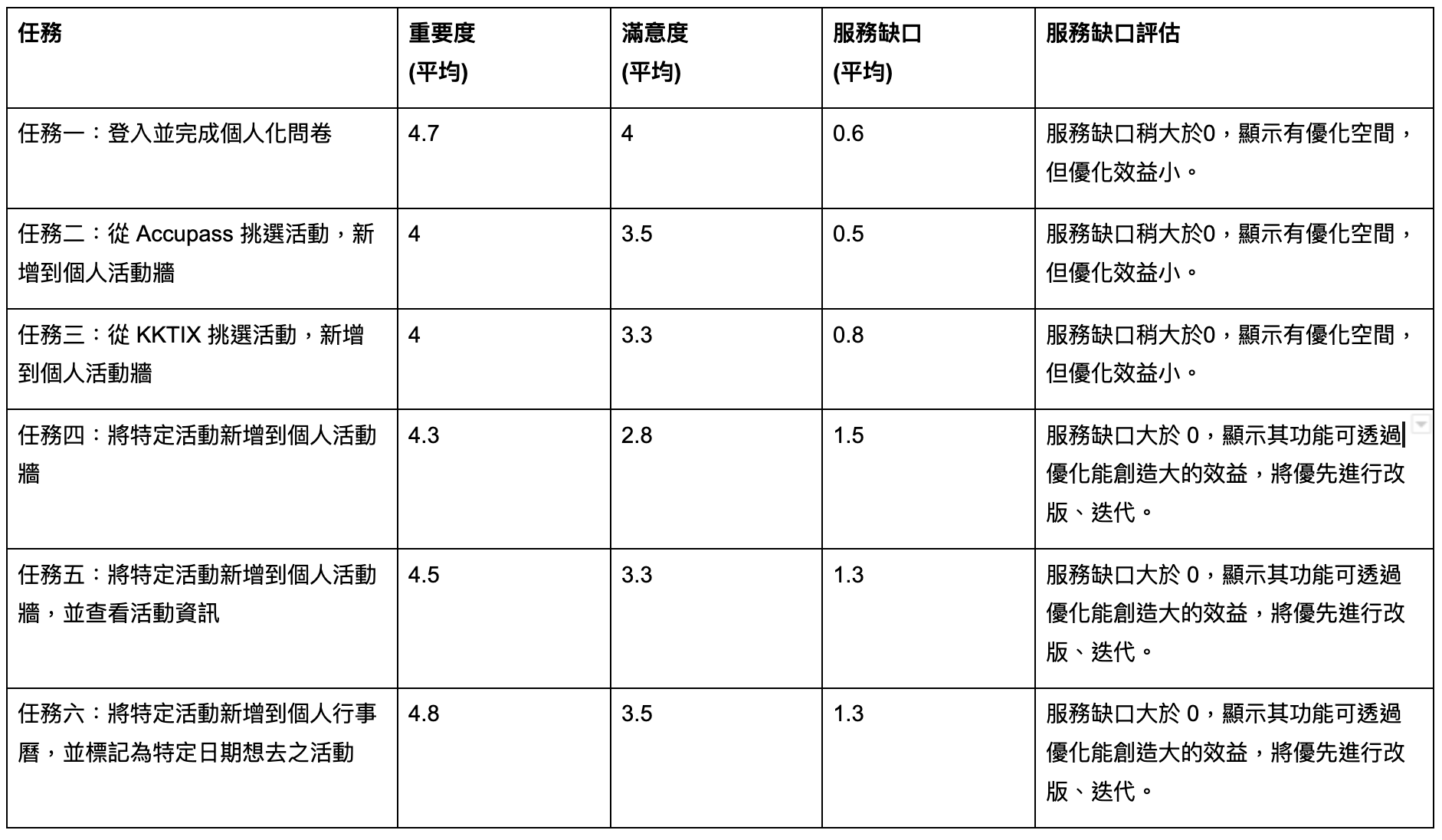 服務缺口分析(重要度、滿意度)