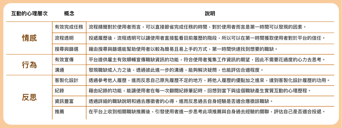 將訪談結果用互動的心裡三層次(情感、行為、反思)整理